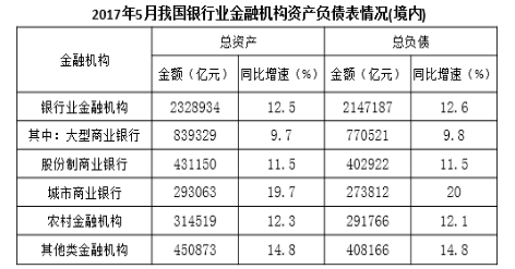 107.在2017年5月我國銀行業(yè)金融機構資產(chǎn)負債表中,下列哪一項的總資產(chǎn)同比增長額最高?( )