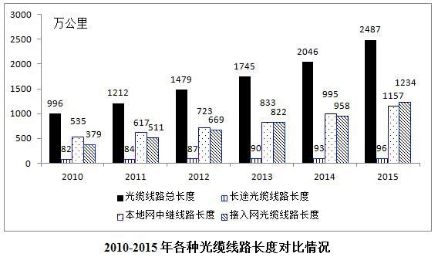 C、2011-2015年接入網(wǎng)光纜線路長(zhǎng)度凈增值超過(guò)同期長(zhǎng)途光纜