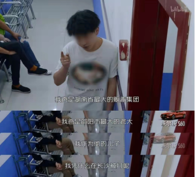 他聲稱父親是湖南省最大的販毒集團(tuán)成員,情緒激動(dòng)地控訴,“我爸是邵陽(yáng)市的老大,我作為他的兒子,憑什么在長(zhǎng)沙被打呢!”