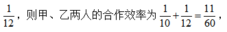 方法二:假設(shè)總工作量為60(10和12的最小公倍數(shù)),則甲的工作效率是6,乙的工作效率是5,合作5小時后還剩工作量60-(6+5)×5=5,乙還需工作1小時,所以完成這項工作共用5+1=6小時,本題選擇B項。