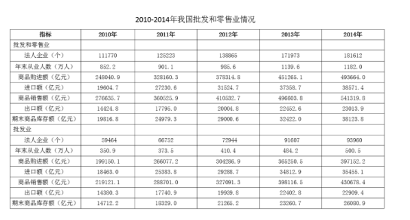 A、2014年批發(fā)業(yè)期末商品庫(kù)存額與零售業(yè)期末商品庫(kù)存額