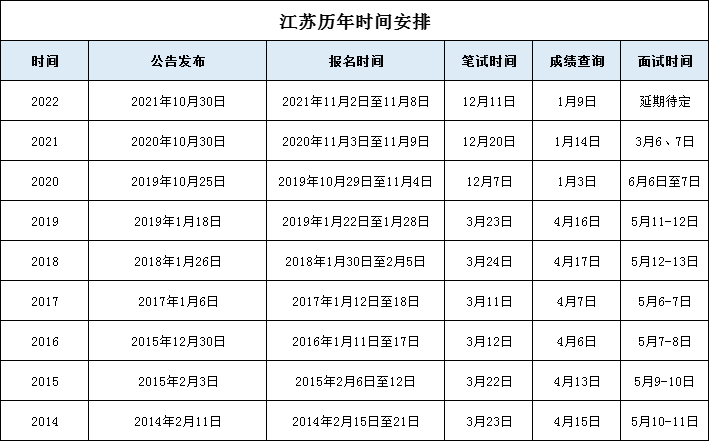 那么2023年江蘇公務(wù)員考試公告職位表什么時(shí)候發(fā)布呢?小編統(tǒng)計(jì)了近年江蘇公務(wù)員考試時(shí)間安排: