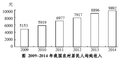 問題:2010-2014年農(nóng)村居民人均純收入增長最多的年份增長了多少元?( )