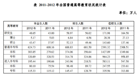 問題:2012年我國碩士研究生畢業(yè)生人數(shù)較上一年增長了:( )
