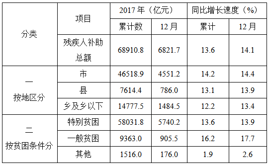 問題2:2017年1月至12月特別貧困的殘疾人補助金額比一般貧困的殘疾人補助金額多( )