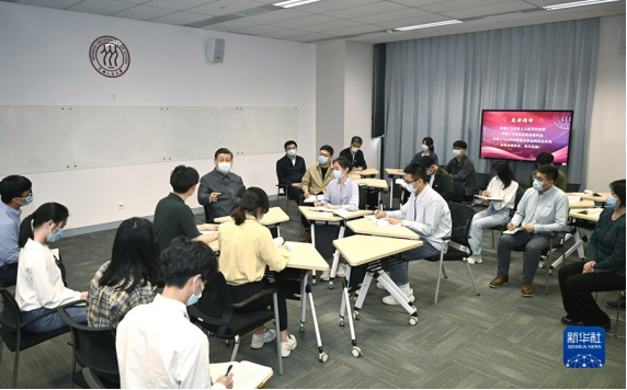 4月25日上午,中共中央總書(shū)記、國(guó)家主席、中央軍委主席習(xí)近平來(lái)到中國(guó)人民大學(xué)考察調(diào)研。這是習(xí)近平在立德樓觀摩思政課智慧教室現(xiàn)場(chǎng)教學(xué)并參與討論。新華社記者 鞠鵬 攝