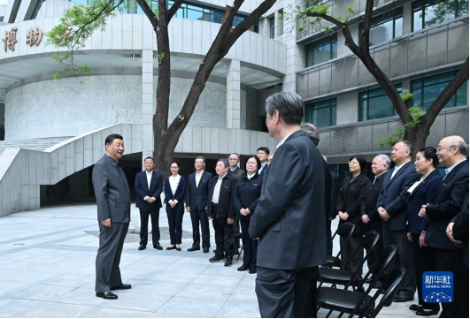 4月25日上午,中共中央總書(shū)記、國(guó)家主席、中央軍委主席習(xí)近平來(lái)到中國(guó)人民大學(xué)考察調(diào)研。這是習(xí)近平在博物館了解學(xué)校近年來(lái)教學(xué)科研成果等情況。新華社記者 謝環(huán)馳 攝