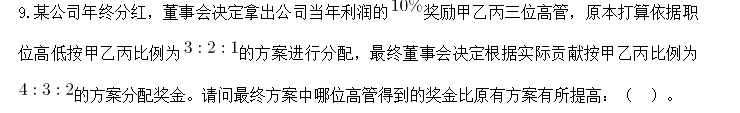 A、甲 B、乙 C、丙 D、不清楚