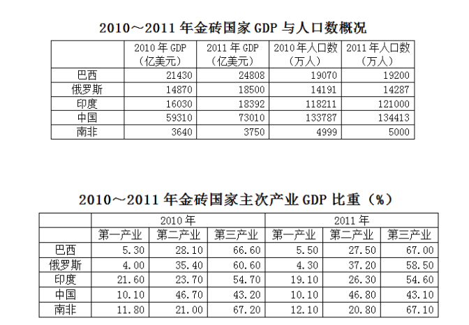 109.2011年金磚國(guó)家中第三產(chǎn)業(yè)GDP規(guī)模最大的是:( )