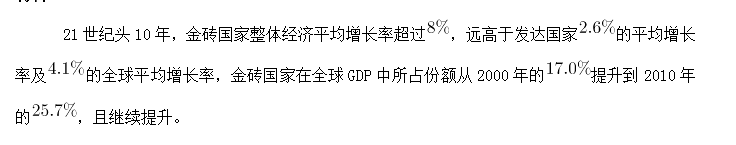 106.2000~2010年金磚國(guó)家的GDP總量占全球份額提升了:( )
