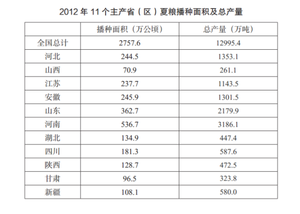 A、2012年,11個(gè)主產(chǎn)?。▍^(qū))夏糧增產(chǎn)量超過了全國(guó)增產(chǎn)總量