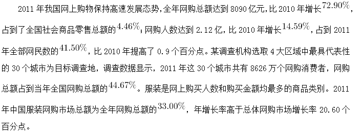 116.2011年中國(guó)服裝網(wǎng)購(gòu)總額年增長(zhǎng)率為:( )