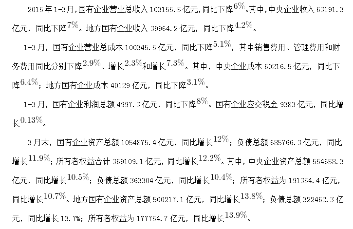 C、2015年3月末,國有企業(yè)資產(chǎn)總額同比增長不到12萬億元