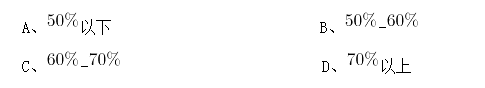 A、低于40% B、40%~50% C、50%~60% D、高于60%