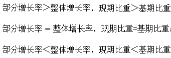 為現(xiàn)期比重,一定大于0,1+部分增長率>0。因此,作差的結(jié)果是否大于0,就取決于部分增長率-整體增長率是否大于0。