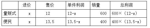例2:某集團旗下有量販式超市和便民小超市兩種門店,集團統(tǒng)一采購的A商品在量販式超市和便民小超市的單件售價分別為12元和13.5元。4月A商品在兩種門店分別售出了600件和400件,共獲利5000元,問:該商品進價為多少元( )?