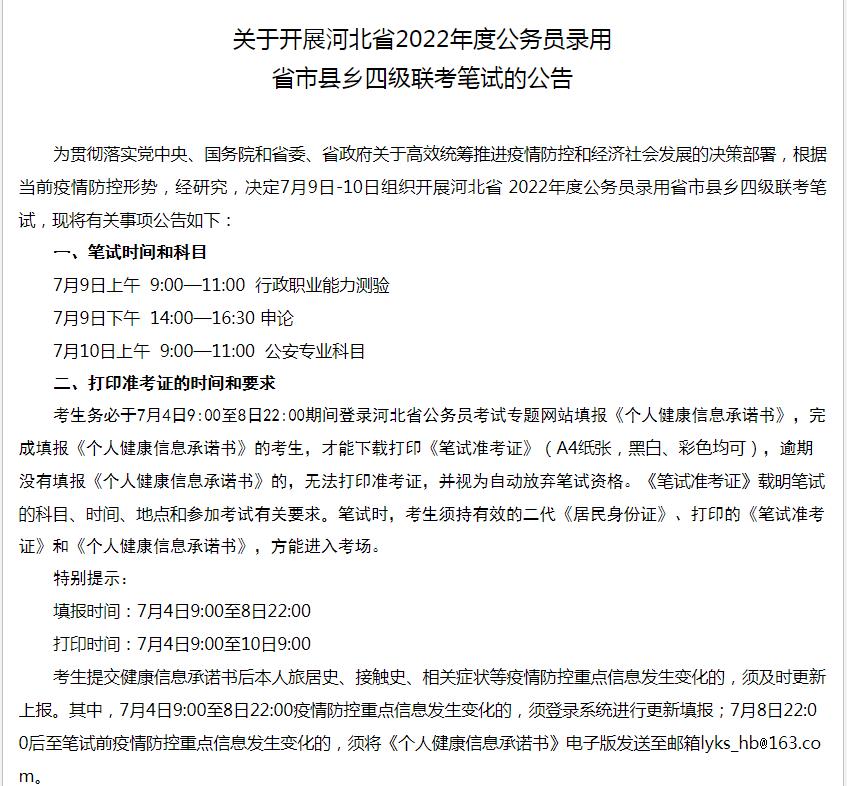 最新消息!2022年河北公務(wù)員考試筆試時(shí)間公布:7月9-10日舉行!官方通知如下: