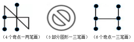 通過上述特點(diǎn),大家要明確一點(diǎn),因?yàn)槠纥c(diǎn)數(shù)是在筆畫數(shù)的基礎(chǔ)上乘以2,而筆畫數(shù)必然是整數(shù),故奇點(diǎn)永遠(yuǎn)是偶數(shù)個(gè)。所以,大家在做題時(shí)如果數(shù)出奇數(shù)個(gè)奇點(diǎn),那必然是數(shù)錯(cuò)了哦!