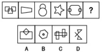 【答案】B【解析】題干圖形各不相同,圖形相對(duì)規(guī)整,封閉區(qū)域線條等相對(duì)分明,嘗試對(duì)稱、直曲及封閉開放性發(fā)現(xiàn)無規(guī)律,封閉區(qū)域和線條數(shù)量也無規(guī)律。此時(shí)考慮筆畫數(shù)可以發(fā)現(xiàn),題干圖形分別呈現(xiàn)奇點(diǎn)數(shù)為0,0,2,0,2,均為一筆畫圖形。觀察選項(xiàng),只有B項(xiàng)有兩個(gè)奇點(diǎn),是一筆畫圖形。而A、C、D項(xiàng)有4個(gè)奇點(diǎn),都是兩筆畫圖形。故選B。