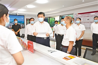 6月28日,中共中央總書記、國家主席、中央軍委主席習近平在湖北省武漢市考察。這是28日下午,習近平在東湖高新區(qū)左嶺街道智苑社區(qū)黨群服務中心,向社區(qū)工作者了解黨建引領基層社區(qū)治理及便民服務等情況,并同前來辦事的老年人親切交談。新華社記者謝環(huán)馳攝