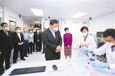 六月三十日下午,國(guó)家主席習(xí)近平在香港特別行政區(qū)行政長(zhǎng)官林鄭月娥陪同下,來(lái)到香港科學(xué)園考察。這是習(xí)近平在香港神經(jīng)退行性疾病中心考察。新華社記者劉彬攝
