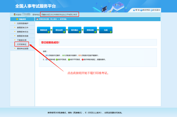 2022年西藏公務(wù)員考試準(zhǔn)考證打印入口