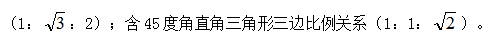 3.特殊角度直角三角形三邊關系:含30度直角三角形三邊比例關系
