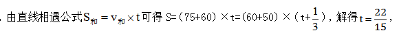例題:小車、客車從甲地開往乙地,貨車從乙地開往甲地,它們同時出發(fā),貨車與小車相遇20分鐘后又遇客車。已知小車、貨車和客車的速度分別為75千米/時、60千米/時和50千米/時,則甲、乙兩地的距離是:( )