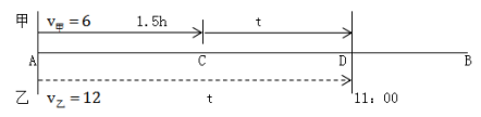 例題:甲以每小時6千米的速度步行從A地前往B地,在甲出發(fā)90分鐘時,乙發(fā)現(xiàn)甲落下了重要物品,立即騎自行車以每小時12千米的速度追甲,終于在上午11點追上了甲。問甲出發(fā)時間是上午幾點?( )