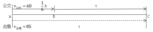 =10千米。此時某人乘出租車從A、公交車從B同時出發(fā),到C點出租車追上公交車(運動時間相等),設出租車追公交車的時間為t,由直線追及公式