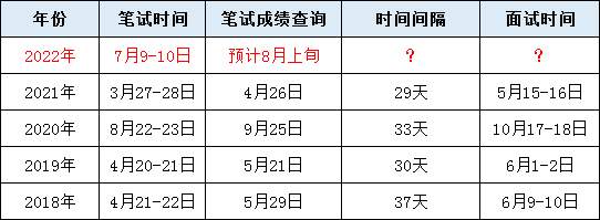 上表歷年重慶公務(wù)員成績(jī)發(fā)布時(shí)間的匯總,近幾年市考從筆試到成績(jī)查詢(xún)間隔時(shí)間一般在30天左右,按照一個(gè)月的時(shí)間來(lái)估算算,2022年重慶大概率會(huì)在8月上中旬發(fā)布成績(jī),準(zhǔn)確的時(shí)間請(qǐng)以官方公告為準(zhǔn)!