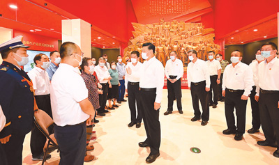 7月12日至15日,中共中央總書記、國家主席、中央軍委主席習(xí)近平在新疆考察。這是13日下午,習(xí)近平在新疆生產(chǎn)建設(shè)兵團(tuán)八師石河子市新疆兵團(tuán)軍墾博物館,會見兵團(tuán)老中青三代建設(shè)者代表。新華社記者李學(xué)仁攝