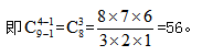 此時只需要將8個相同元素的間隔上插入3個隔板,即可以將8個相同元素按照不同數(shù)量分配給了4個不同對象。