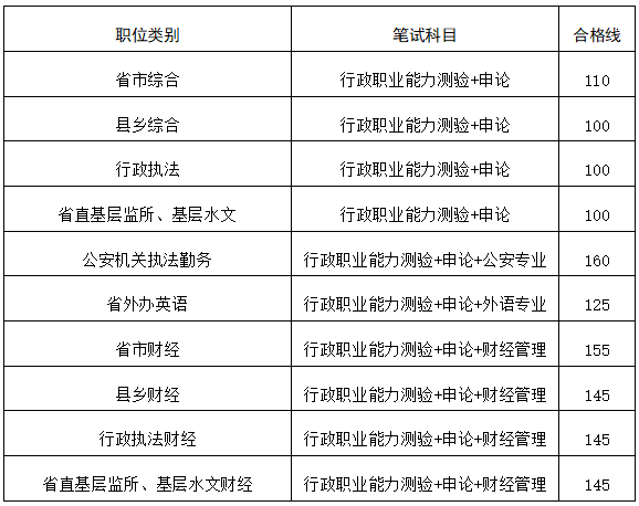 按職位類別分別劃定合格分數(shù)線如下(點擊圖片查看大圖):