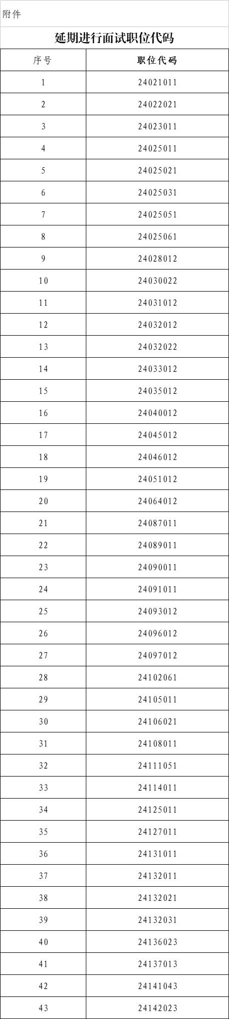 附件:延期進行面試職位代碼